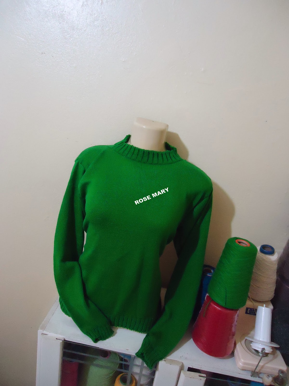 BLUSA VERDE E CACHECOL VERDE COM VERMELHO